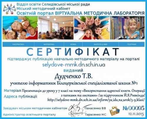 Сертифікат від від освітнього порталу віртуальна методична лабораторія